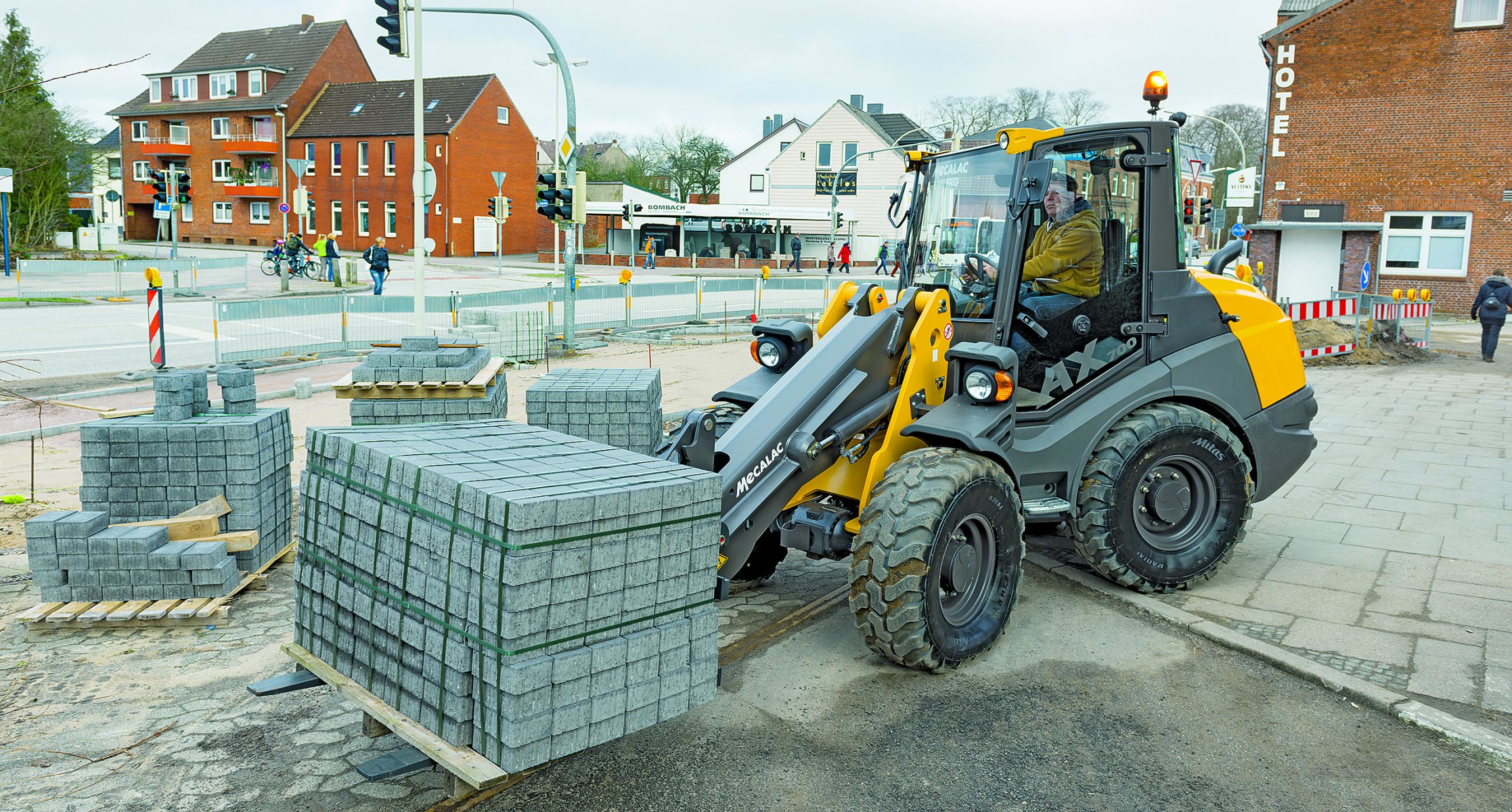 An excellent machine for all rental fleets. A height of 2.47 m and a bucket width of 1.6 m make this machine ideal for narrow work sites. A highlight of the machine is the temperature-dependent hydraulic fan control. This system offers minimum noise emission and low fuel consumption. The new Mecalac AX series convinces with robustness, low running costs, ease of operation, simplified maintenance and, last but not least, a sleek design.